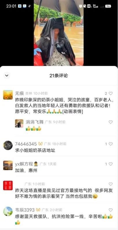 “太感人了,太接地气了。”直播中,上万网友一直在线陪伴,持续互动,有的出谋划策,关心着受困群众、救援人员和记者的安危,有的分享最新汛情信息。