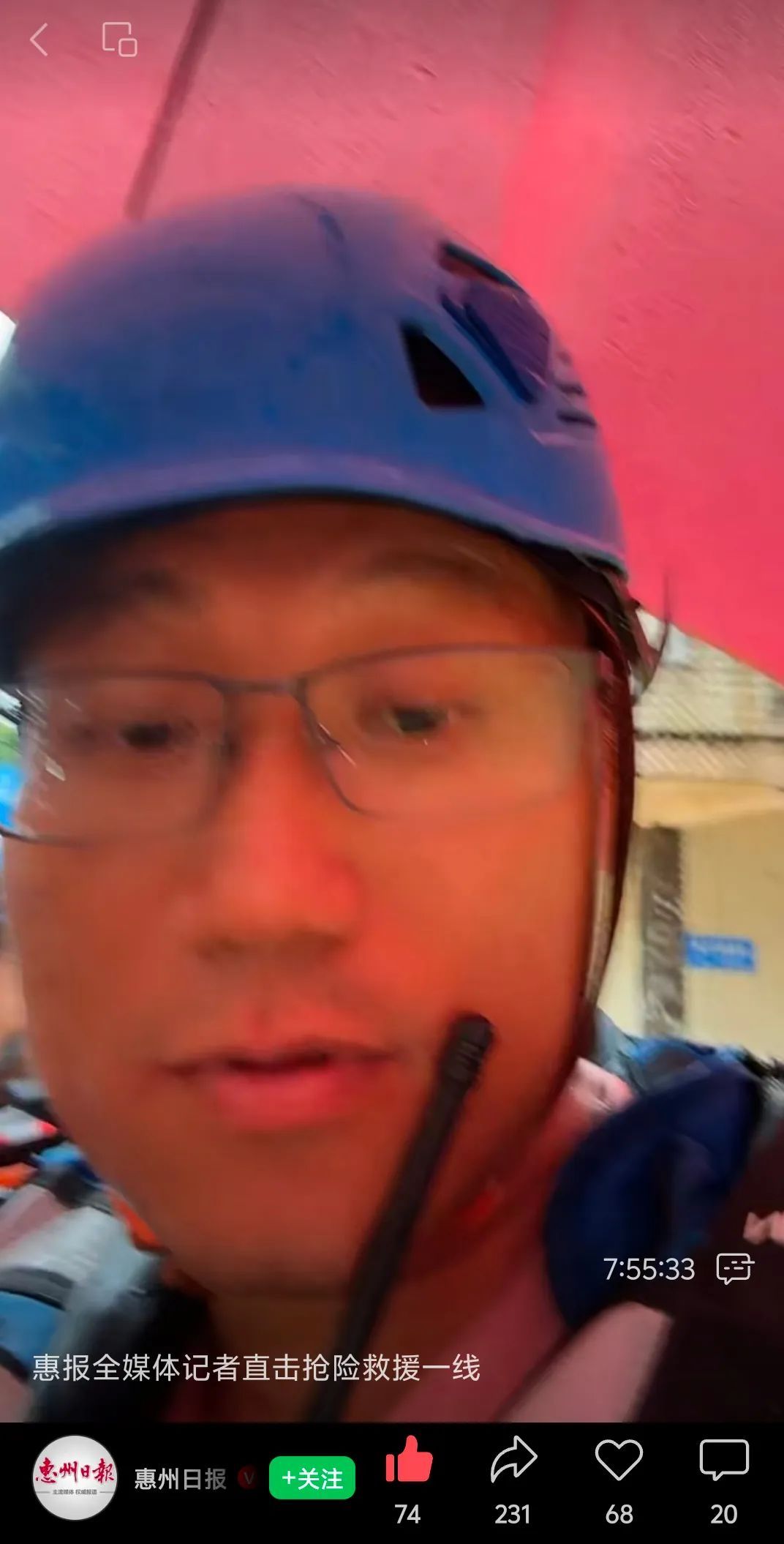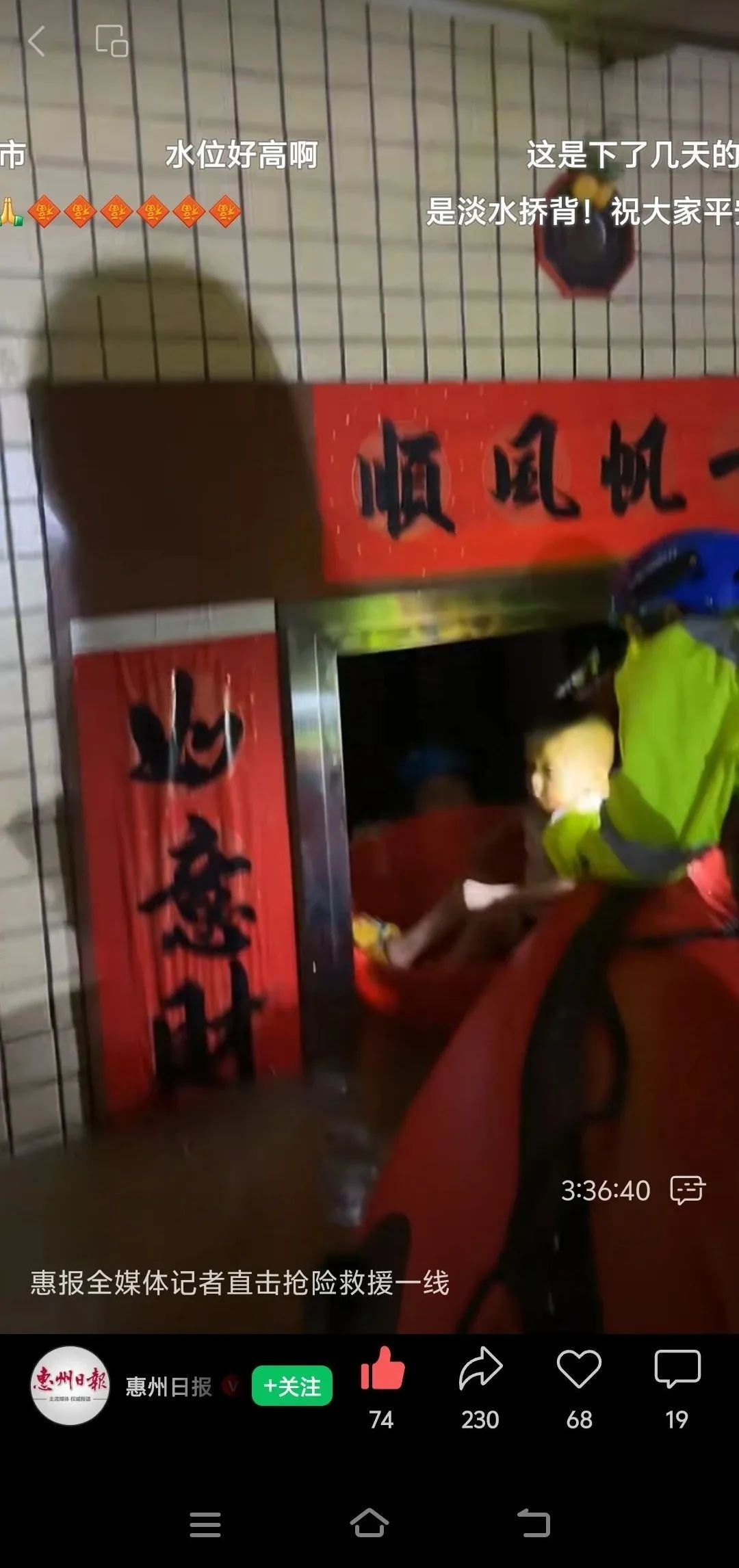 连续8个小时,这场没有剧本的直播,吸引了112.5万人观看。从网友被惠州蓝天救援队队员轮番接力救出受困群众感动送出的点赞,到“直播间”成为汇聚救援信息的平台;从不断有热心群众为直播设备送上充电宝让直播不断播,到记者转场迷路时网友频频指路和热心摩托小哥仗义出手送记者前往抢险现场,这场直播成为一场感动全城的爱心接力,在风雨激荡中传递出惠州这座全国文明城市的温度,一座城市面对无情洪灾展现出的众志成城在“直播间”得到不断升华。